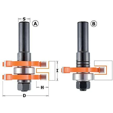jeu de fraises carbure diametre 47,6 mm pour réalisation tenons sur défonceuse en position stationnaire avec queue 12 mm