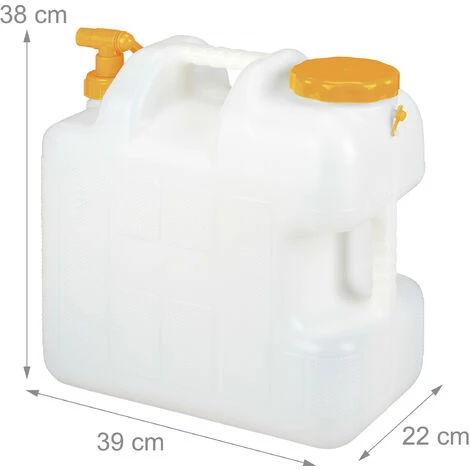 LesactivitĂ©s d’extĂ©rieures en Ă©tĂ© sans suffisamment de rĂ©serves d’eau peuventrapidement devenir des traversĂ©es du dĂ©sert. Vous avez toujours Ă portĂ©e demain la rĂ©serve d’eau potable nĂ©cessaire pour le camping ou les festivals avecle bidon d’eau transportable. Grâce Ă la grande ouverture avec bouchon Ă vis,le jerrycan est facile Ă remplir. Le robinet rotatif vous permet de prĂ©leverfacilement la quantitĂ© d’eau souhaitĂ©e. En outre, la boĂ®te en plastique estadaptĂ©e pour les aliments et ne contient pas de BPA.