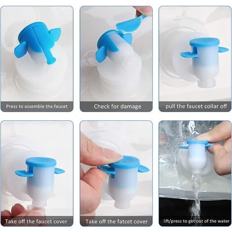 Conception du robinet : notre porte-eau est conçu avec un robinet, ce qui est pratique pour l’évacuation de l’eau et rend la qualité de l’eau plus hygiénique et sûre. Comment utiliser le robinet : vérifiez si le robinet est complet. Retirez le collier du robinet. Retirez complètement le collier du robinet et le couvercle du robinet. L’eau peut être évacuée en soulevant/en appuyant avec les doigts.